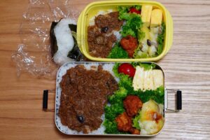 昨日のうちに衣までつけておいたので、朝は揚げるだけ。