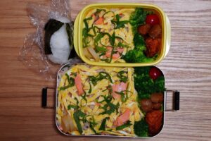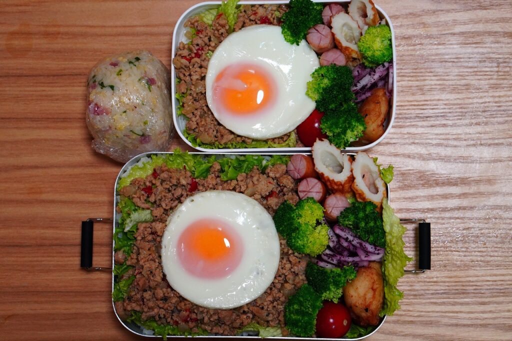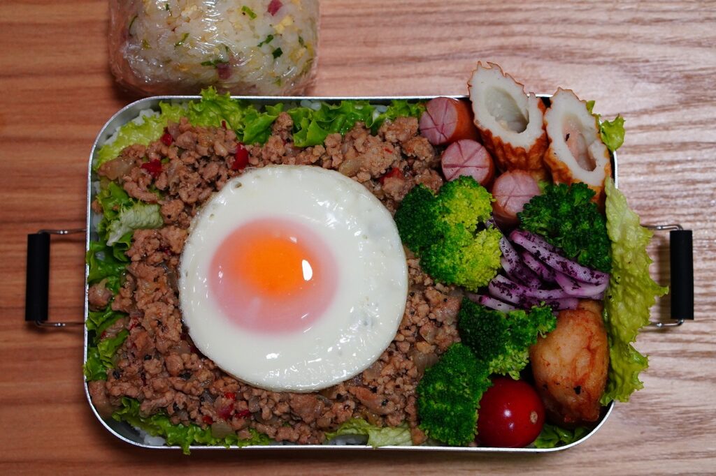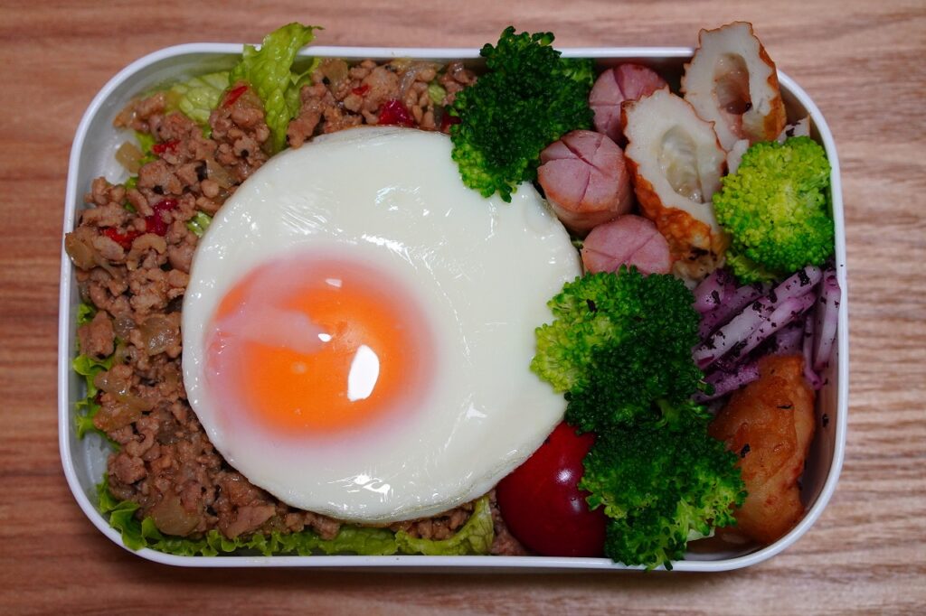 晩御飯で食べた、ガパオライスのルー?(具)が少し余っていたので弁当に使わせてもらう。