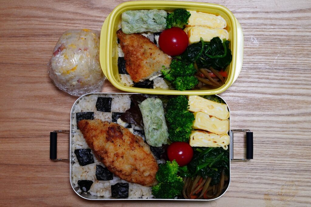 時間がないのに、海苔がチェック柄になっているのは、焼き海苔が少なかったから。